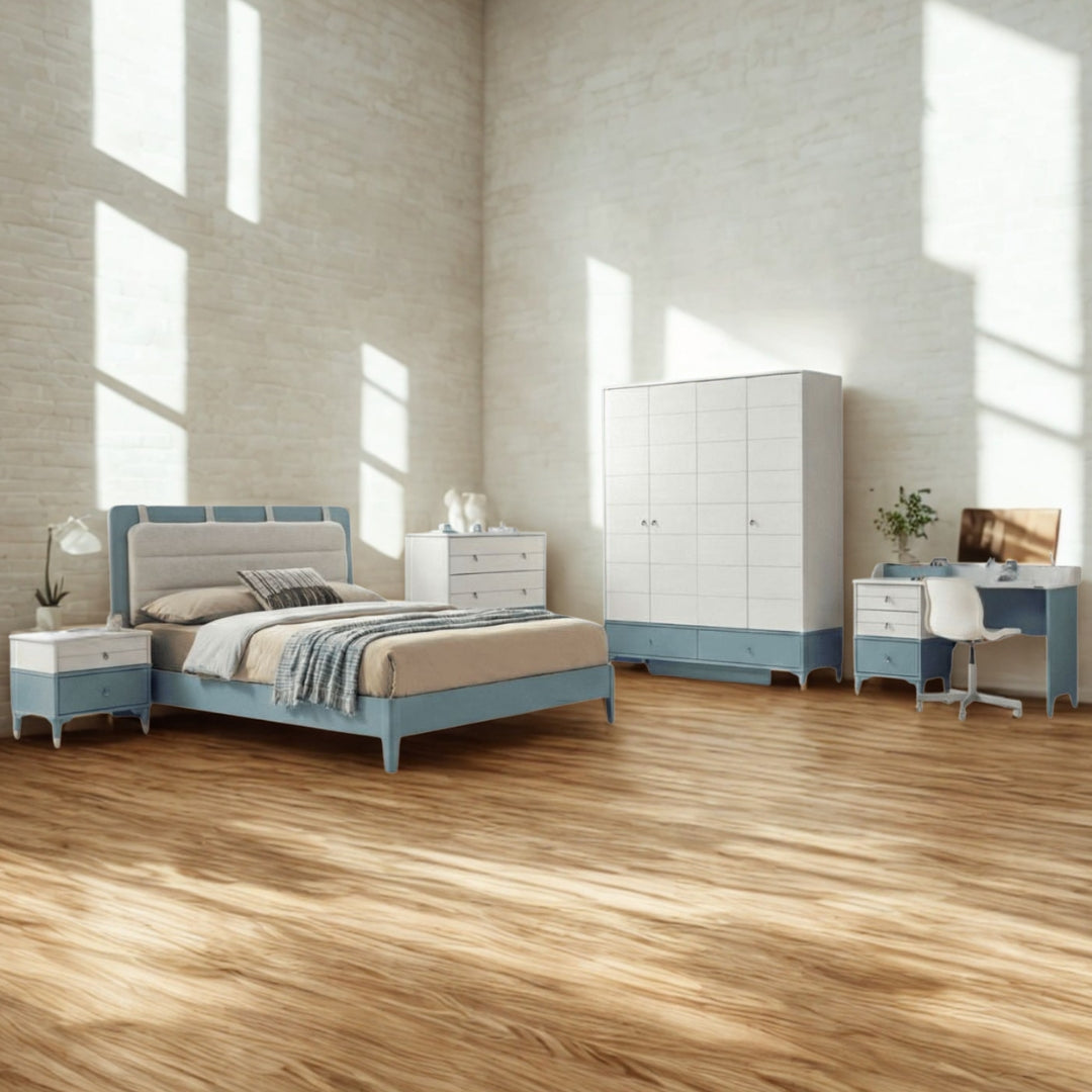 صُنعت مجموعة غرفة النوم هذه من مواد عالية الجودة وبنية داخلية متينة، وهي مصممة لتجمع بين المتانة والمظهر الأنيق. وتستخدم الخشب الهندسي مع تشطيب أنيق ومناسب للأثاث، وهو ما يُفضل عادةً في أثاث غرف النوم، كما تم تعزيزها بخشب رقائقي إندونيسي لمزيد من المتانة والثبات على المدى الطويل. ويساعد هذا المزيج على إضفاء مظهر راقي وأداء يومي موثوق به، بالإضافة إلى سطح سهل العناية يتناسب مع التصميمات الداخلية العصرية.