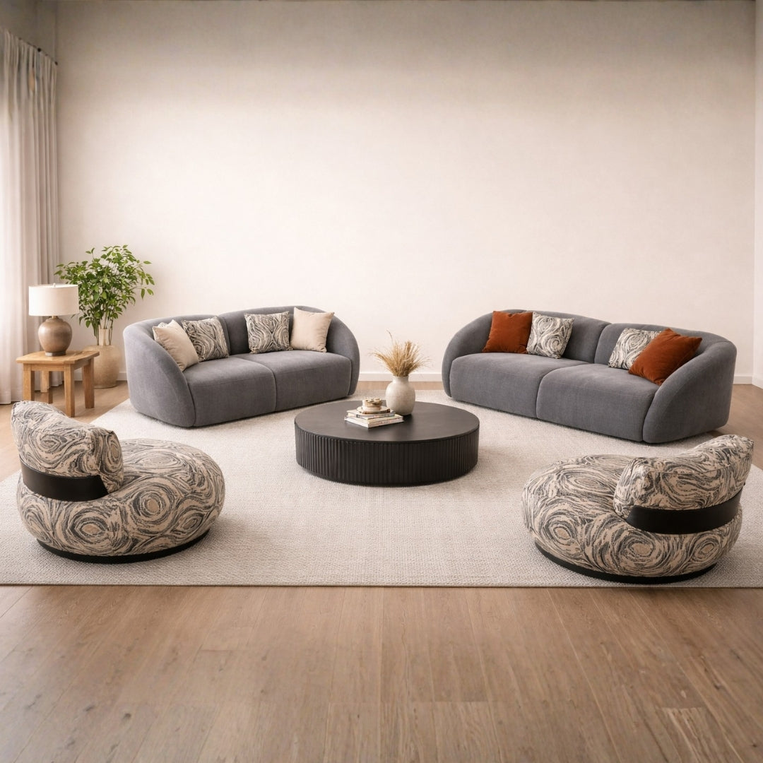 تبرز كنبة التلفزيون بانحناءاتها الناعمة وشكلها المعاصر، مما يجعلها إضافة مميزة للديكورات الداخلية الحديثة. صُممت هذه المجموعة لتوفير الراحة والاسترخاء والجاذبية البصرية، وتضفي مظهراً أكثر خفة وانسيابية على الغرفة مع توفير مقاعد عملية للاستخدام اليومي. تم تصنيع هيكلها الداخلي من الخشب السويدي، مع تعزيزه بالخشب الرقائقي الإندونيسي، وتبطينه بمزيج الرغوة الخاص من KLIK المصنوع من رغوة محلية عالية الجودة، مما يمنحها إحساسًا بالراحة المتوسطة الذي يناسب الاستخدام اليومي. يجعل الشكل الأنيق والتصميم المرن لهذه المجموعة خيارًا ممتازًا للعملاء الذين يبحثون عن شيء عصري ودافئ ومرحب. تتوفر المجموعة بألوان وأقمشة متعددة لتكمل تصميمك الداخلي.